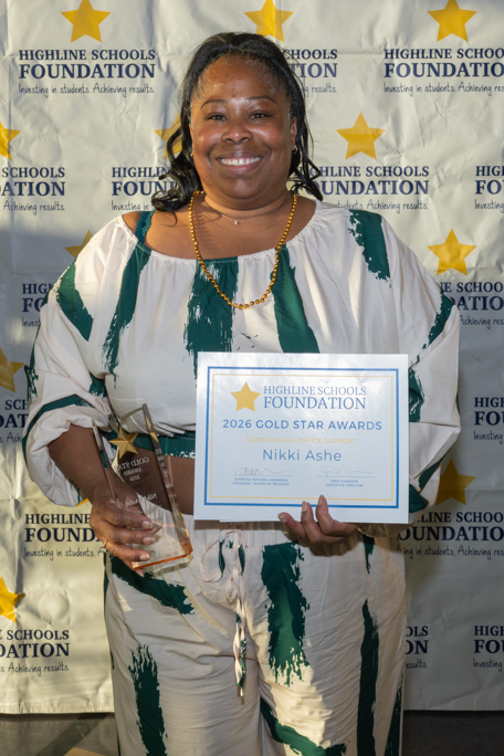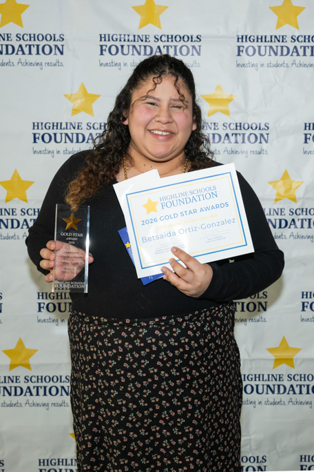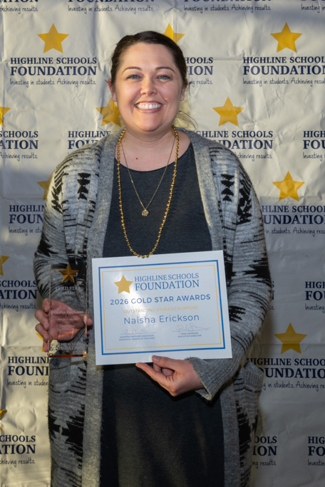 The Gold Star Awards are prestigious honors in our school community, recognizing Highline Public Schools best and brightest โ celebrating the outstanding Teachers, Volunteers, Alumni, Staff and Administrators throughout the district.ย The Highline Schools community is asked to submit nominations early in the year, and winners are selected by a committee comprised of Highline Schools Foundation staff and volunteers from our Board of Trustees.